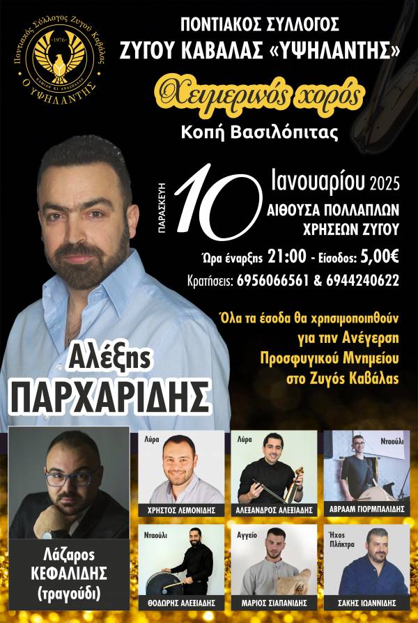 Όλα τα έσοδα της εκδήλωσης θα χρησιμοποιηθούν για την Ανέγερση Προσφυγικού Μνημείου στο Ζυγός Καβάλας!
