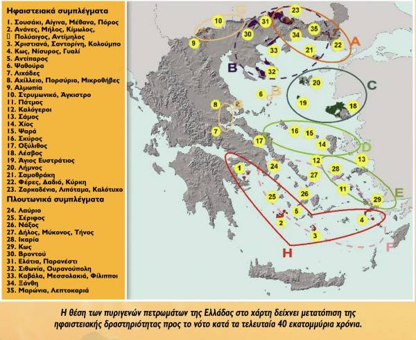 Στον παρακάτω χάρτη βλέπετε την εξέλιξη της ηφαιστειότητας στην Ελλάδα