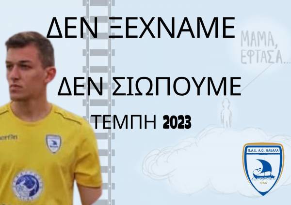 Η ΠΑΕ Α.Ο Καβάλα τιμά τη μνήμη των 57 συνανθρώπων μας στην τραγωδία των Τεμπών που έχασαν άδικα τη ζωή τους το μοιραίο βράδυ της 28ης Φεβρουαρίου του 2023, ανάμεσά τους και το δικό μας παιδί, ο Ιορδάνης Αδαμάκης.
