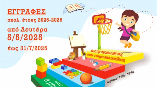 Οι εγγραφές και οι προκρατήσεις θέσεων για την ΔΩΡΕΑΝ φιλοξενία παιδιών ανέργων ή αυτοαπασχολουμένων ή εργαζομένων μητέρων στον ιδιωτικό τομέα, σύμφωνα με τις προϋποθέσεις του προγράμματος ΕΣΠΑ «ΠΡΟΩΘΗΣΗ ΚΑΙ ΥΠΟΣΤΗΡΙΞΗ ΠΑΙΔΙΩΝ ΓΙΑ ΤΗΝ ΕΝΤΑΞΗ ΤΟΥΣ ΣΤΗΝ ΠΡΟΣΧΟΛΙΚΗ ΕΚΠΑΙΔΕΥΣΗ 2025-2026», έχουν ξεκινήσει και θα διαρκέσουν έως την 31η Ιουλίου 2025, ώστε εν τέλει να αναρτηθούν από την ΕΕΤΑ οι οριστικοί πίνακες των αποτελεσμάτων.