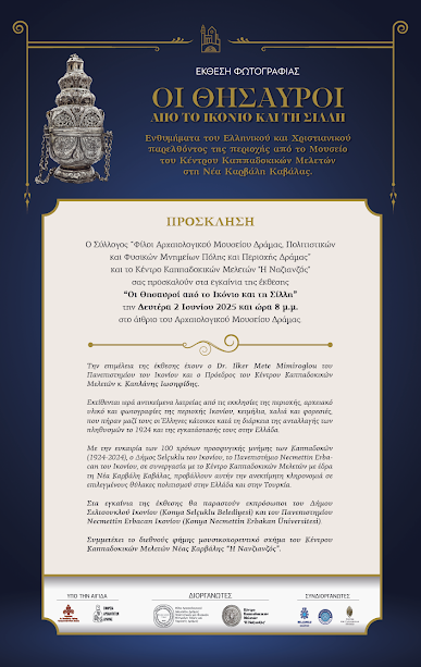 Διοργάνωση: Ο Σύλλογος «Φίλοι αρχαιολογικού μουσείου Δράμας, Πολιτιστικών και Φυσικών Μνημείων πόλης και περιοχής Δράμας» και Το Κέντρο Καππαδοκικών Μελετών "Η Ναζιανζός".