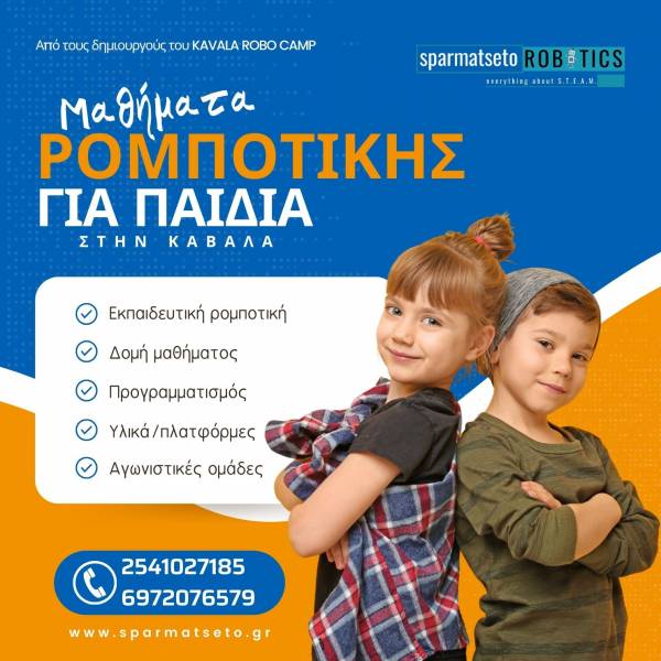 Το Sparmatseto Robotics/Kavala, πραγματοποιεί την Τρίτη 10 Ιουνίου, στις 18:30, στο Nekubi art space (Ελ. Βενιζέλου 79) την γιορτή ολοκλήρωσης της Ακαδημαϊκής Χρονιάς 2024-25, των ομάδων εκπαιδευτικής ρομποτικής.