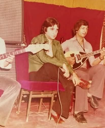 Η φωτογραφία είναι από το 1979 όταν ο Βασίλης Καρράς ήταν 26 ετών. Στο μπουζούκι δίπλα του ήταν ο Αντώνη Πεχλιβάνης.