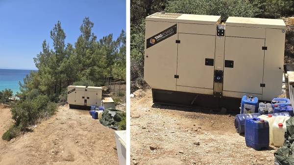 Ενδεικτική είναι η φωτογραφία που έστειλε αναγνώστης του KavalaNews στην οποία φαίνεται μια ηλεκτρογεννήτρια υγρών καυσίμων σε beach bar της νότιας Θάσου.