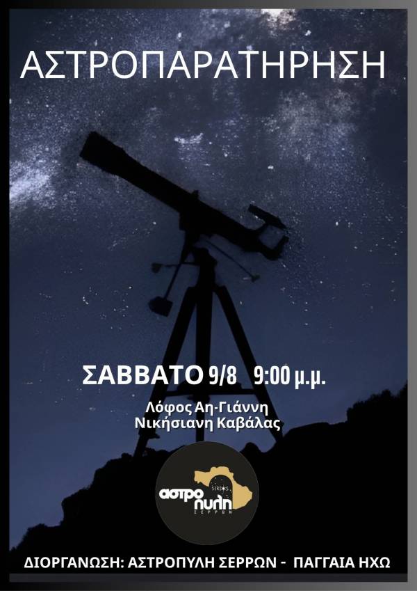 Η εθελοντική ομάδα “Αστροπύλη Σερρών” και η εθελοντική ομάδα “Παγγαία Ηχώ”, διοργανώνουν τη συγκεκριμένη εκδήλωση.