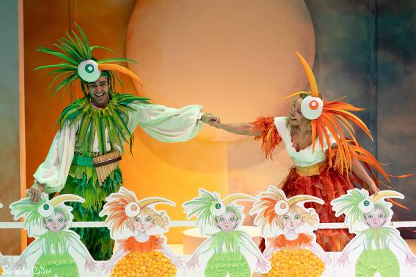 Ο πρίγκιπας Ταμίνο -σύμβολο της αρετής και της αγάπης, βρίσκει στο πρόσωπο της Παμίνας το ιδανικό ταίρι. Όμως το ζευγάρι θα περάσει από πολλές δοκιμασίες. Με όπλο την αγάπη, οι ήρωές μας θα νικήσουν και θα ενωθούν για πάντα. Μαζί τους ο Παπαγκένο, ένας χαριτωμένος παραμυθένιος ήρωας που με τις σκανδαλιές του θα χαρίσει στα παιδιά στιγμές χαράς και γέλιου. Το έργο τελειώνοντας βρίσκει τους δυο εχθρούς, βασίλισσα της νύχτας και βασιλιά της μέρας, ενωμένους. Το καλό θα νικήσει το κακό και θα απλωθεί σ’ όλη τη γη.