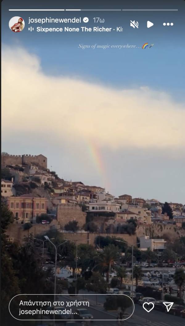 Από τα στορις της μπορεί κάποιος να καταλάβει ότι στο σημείο που διαμένει έχει θέα στο κάστρο της πόλης. Το βράδυ της Τρίτης επισκέφθηκε την περιοχή του Αγίου Νικολάου όπου πέρασε μια βόλτα από το οβελιστήριο «Το Σπέσιαλ». Οι ιδιοκτήτες του καταστήματος φωτογραφήθηκαν μαζί της ενώ έλαβαν και τα θετικά της σχόλια για τις σπεσιαλιτέ που ετοιμάζουν.