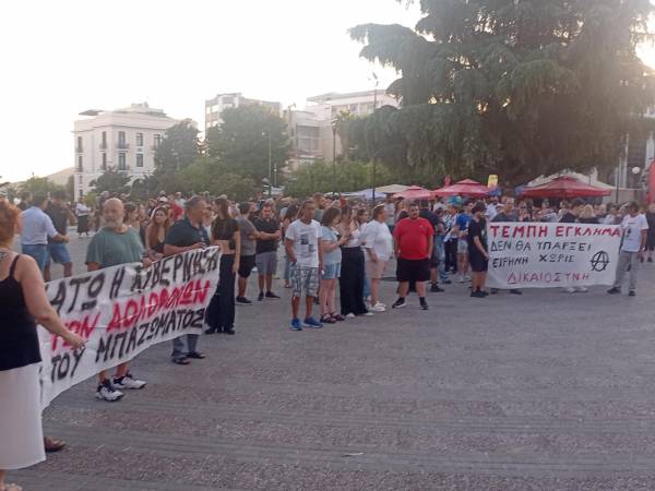 Σωματεία και απλός κόσμος βρέθηκαν στην πλατεία για να ζητήσουν δικαιοσύνη για τους 57 νεκρούς του δυστυχήματος. Έγινε σύνδεση κατά τη διάρκεια της ομιλίας της Μαρίας Καρυστιανού στην Αθήνα και οι παρευρισκόμενοι άκουσαν την ομιλία της κ. Καρυστιανού.