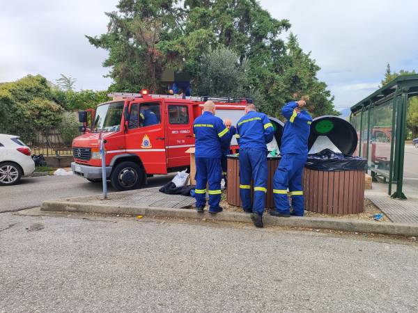 Η επέμβαση της Πυροσβεστικής ήταν άμεση και η γυναίκα με τη βοήθεια σκάλας που τοποθετήθηκε στο κάδο, κατάφερε να βγει χωρίς εμφανή τραύματα.