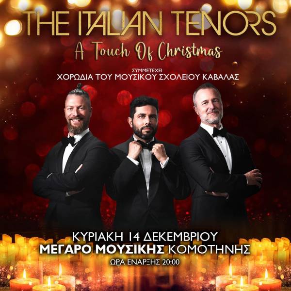 Οι αγαπημένοι του ελληνικού κοινού The Italian Tenors έρχονται για πρώτη φορά στο Μέγαρο Μουσικής της Κομοτηνής την Κυριακή 14 Δεκεμβρίου, με την παράσταση A Touch of Christmas, για να δώσουν μια ιδιαίτερη μουσική πινελιά στο εορταστικό πνεύμα των Χριστουγέννων.