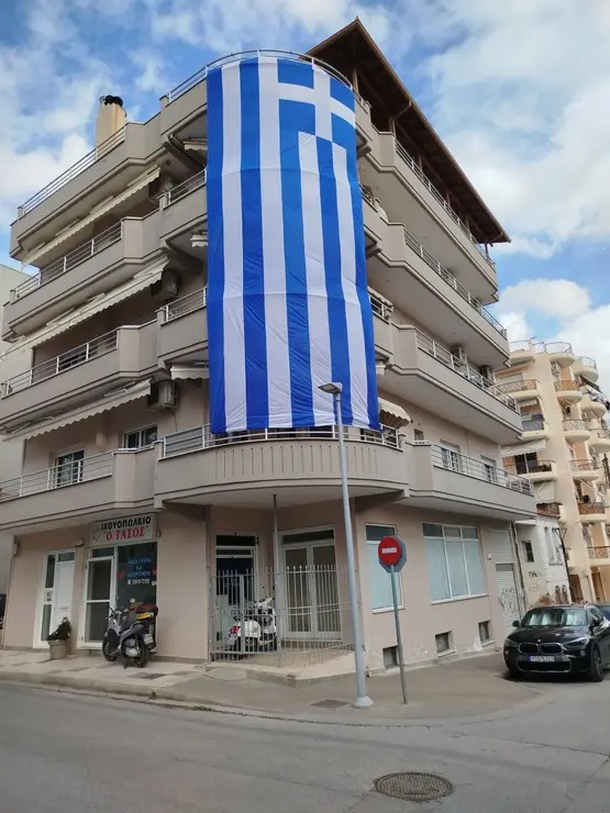 Και τότε η συγκεκριμένη οικοδομή στην οδό Πραξιτέλους είχε ντυθεί… στα γαλανόλευκα, με τη μεγαλύτερη ελληνική σημαία με μήκος 9 μέτρων που έχει τοποθετηθεί ποτέ σε μπαλκόνι της πόλης.