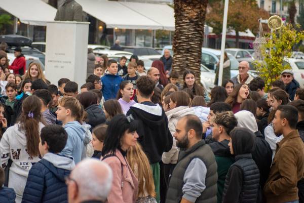 Η εκδήλωση πραγματοποιήθηκε λίγο μετά τις 12 το μεσημέρι στην παραλία της πόλης, στην οδό Εθνικής Αντιστάσεως, μπροστά από την προτομή του Κανάρη, παρουσία πλήθους πολιτών, μαθητών και εκπροσώπων φορέων.