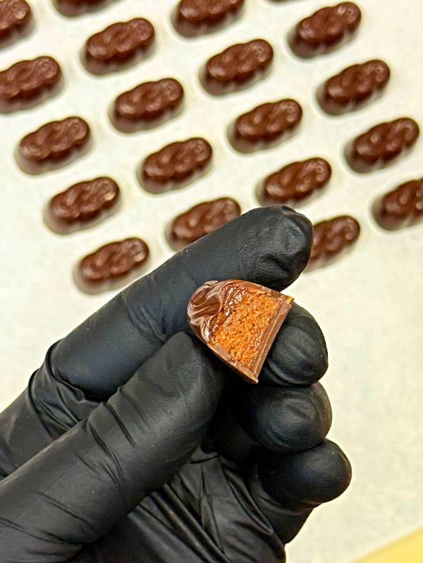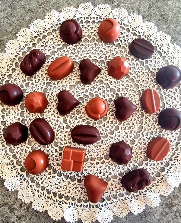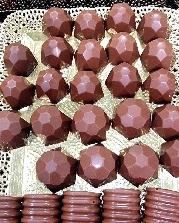 Θα βρείτε όμως και άλλα πολλά χειροποίητα σοκολατάκια στο “Le Fondant” γεμάτα χαρακτήρα, που περιέχουν στο εσωτερικό τους άλλους ευρηματικούς συνδυασμούς υλικών , αρωμάτων, αποσταγμάτων και φρούτων.