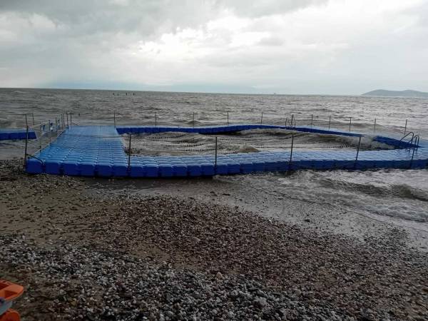 Πάντως όπως λένε κάτοικοι της περιοχής η πισίνα μέχρι σήμερα δεν λειτούργησε ως κολυμβητήριο για παιδιά μέχρι που πήρε ο αέρας ανήμερα του Αγίου Νικολάου και την έβγαλε στη στεριά.