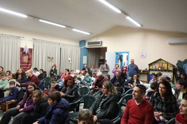 Λίγο αργότερα, υποδέχτηκαν τον Άη Βασίλη, ο οποίος τους μοίρασε διαφορά δώρα και δοκίμασαν εδέσματα και γλυκά από τον πλούσιο μπουφέ του συλλόγου!
