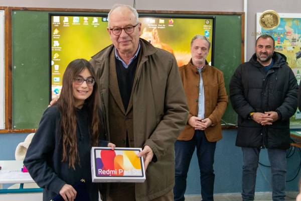 Παράλληλα, τις απένειμε τιμητικές πλακέτες, ενώ δώρισε και ένα από tablet στις τάξεις που φοιτούν, για τη αναβάθμιση των συνθηκών διδασκαλίας και μάθησης.