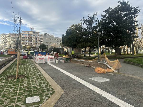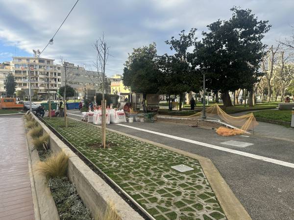 Ο χώρος διαμορφώνεται προκειμένου να αλλάξει όψη. Από την άλλη, παραμένει η ζημιά στο σιντριβάνι και στο δάπεδο που προκλήθηκε από το πέρασμα οχημάτων από το σημείο.