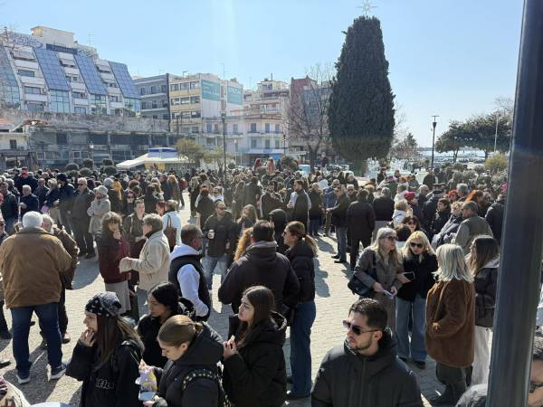 Πάρα πολύς ήταν ο κόσμος που συγκεντρώθηκε το μεσημέρι του Σαββάτου 28 Φεβρουαρίου που έδωσε και φέτος το παρών στην ημέρα μνήμης από τη σιδηροδρομική τραγωδία στα Τέμπη.