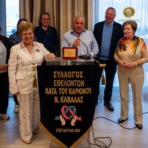 Σε μια σεμνή και συνάμα συγκινητική τελετή, στην κατάμεστη αίθουσα "Φίλιππος" του ξενοδοχείου “Γαλαξίας”, ο Σύλλογος Εθελοντών κατά του Καρκίνου Καβάλας, κατόπιν ομόφωνης απόφασης του, βράβευσε το απόγευμα της Τετάρτης 1 Απριλίου, τον Σύλλογο Συνταξιούχων Υπαλλήλων ΟΤΑ Νομού Καβάλας, για την πολύχρονη και αμέριστη οικονομική συμπαράστασή του προς άπορους καρκινοπαθείς.