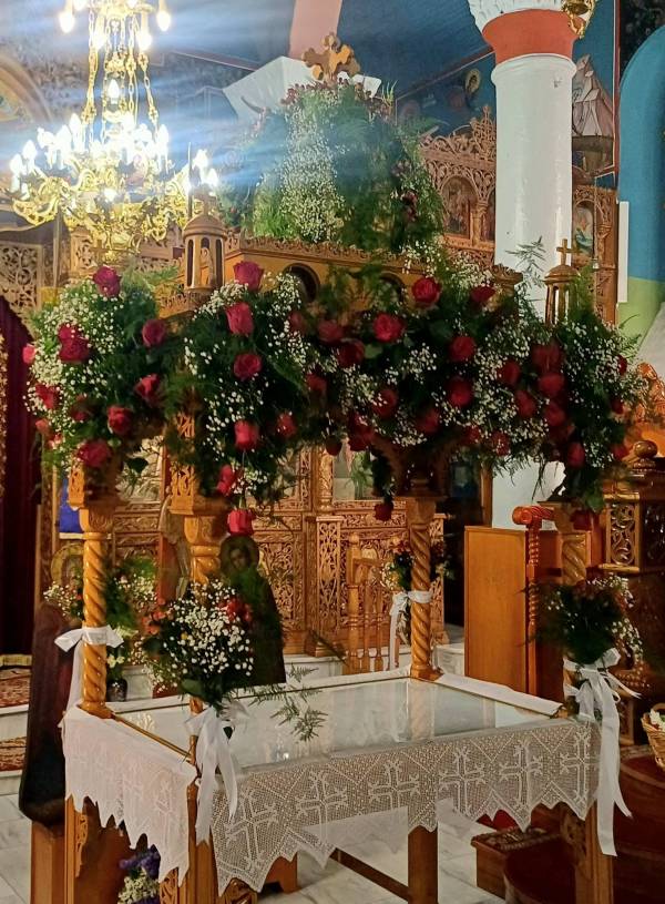 Παράλληλα εικόνες από τον στολισμό του επιταφίου στον ιερό ναό Κοιμήσεως της Θεοτόκου στη Μουσθένη, μοιράστηκε η Γεωργία Σεχτανίδου.