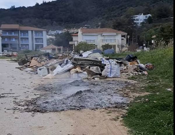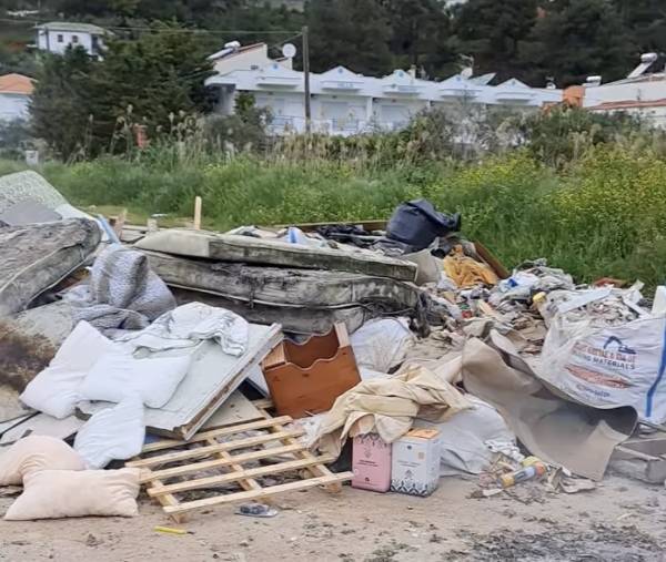 Σκουπίδια κάθε λογής από οικιακό εξοπλισμό έως εξοπλισμό γραφείου και μπιτς μπαρ έχουν πετάξει άγνωστοι στη Χρυσή Αμμουδιά στη Θάσο πολύ κοντά στην παραλία.
