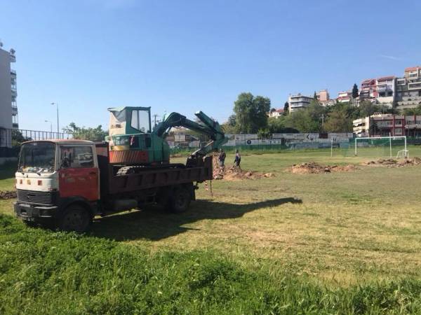 Το πρωί της Τρίτης 24 Απριλίου 2018, ξεκίνησαν οι τομές για την διερεύνηση του υπεδάφους, παρουσία του Αντιδημάρχου Αθλητισμού Γιώργου Φιλόσογλου και της επιβλέπουσας του Δήμου Καβάλας και διαπιστώθηκε ότι δεν υπάρχουν κάτω από τον αγωνιστικό χώρο δίκτυα, πράγμα το οποίο διευκολύνει τις εργασίες. Ξεκινούν επίσης άμεσα οι εργασίες αποξήλωσης, στους χώρους των αποδυτηρίων και στις κερκίδες, ενώ εύκολα διαπιστώνει κανείς, το ενδιαφέρον της εταιρείας, να προχωρήσει το έργο με πολύ γρήγορους ρυθμούς.