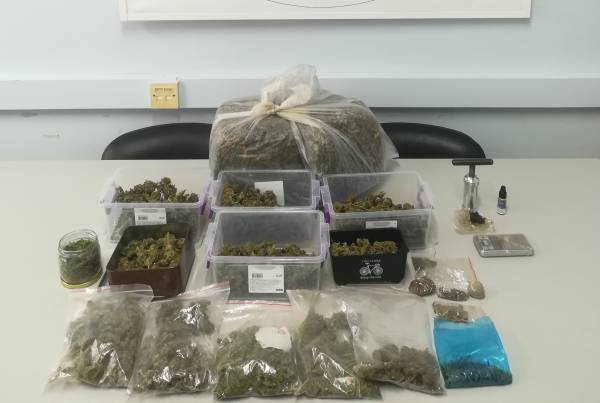Κατασχέθηκαν οι παραπάνω ποσότητες ναρκωτικών, η ζυγαριά και η πρέσα επεξεργασία κάνναβης.