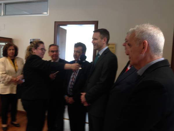 Μετά από μια σύντομη συνάντηση με την Πρυτανεία του ΤΕΙ ΑΜΘ ο Πρύτανης Δημήτριος Μπαντέκας και ο Αμερικανός Πρόξενος Gregory W. Pfleger έκαναν δηλώσεις για την αγαστή, μακροχρόνια και μελλοντική συνεργασία του ΤΕΙ ΑΜΘ με το Αμερικανικό Προξενείο Θεσσαλονίκης, όπως επίσης και τον υποστηρικτικό ρόλο του Αμερικανικού Προξενείου προς το νέο Πανεπιστήμιο της Καβάλας, σε οτι αφορά την συνεργασία αυτού με οργανισμούς, φορείς και Τριτοβάθμια Εκπαιδευτικά Ιδρύματα στην Αμερική. Στην συνέχεια πραγματοποιήθηκε η απονομή των βεβαιώσεων παρακολούθησης του σεμιναρίου "Business English and Communicatin Skills", το οποίο οργανώθηκε και υλοποιήθηκε υπό την αιγίδα του Αμερικανικού Προξενείου Θεσσαλονίκης και του Τμήματος Δημοσίων και Διεθνών Σχέσεων του ΤΕΙ ΑΜΘ. Τα πτυχία παρέδωσε στους φοιτητές ('Ελληνες και ξένους) ο ίδιος ο κος Pfleger μέσα σε μια ατμόσφαιρα γεμάτη θετική διάθεση. Στο τέλος ακολούθησε η οικογενειακή φωτογραφία στο προαύλιο του ΤΕΙ με φόντο την Καβάλα του απομεσήμερου.