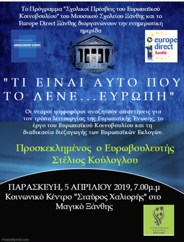 Στην Ξάνθη (5/4) o ευρωβουλευτής Στ. Κούλογλου θα μιλήσει στα πλαίσια του προγράμματος “Σχολικοί Πρέσβεις του Ευρωπαϊκού Κοινοβουλίου” στην ενημερωτική ημερίδα “Τι είναι αυτό που το λένε...Ευρώπη”, που διοργανώνει το Μουσικό Σχολείο Ξάνθης και το Europe Direct Ξάνθης.