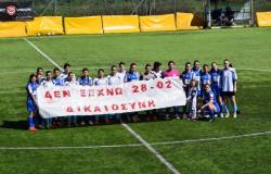 Με πανό μνήμης και αιτήματος απονομής δικαιοσύνης για τα θύματα των Τεμπών, μπήκαν οι Ομάδες Ποδοσφαίρου Γυναικών Π.Α.Σ. ΓΙΑΝΝΙΝΑ και Α.Ο Καβάλα 86 στον αγωνιστικό χώρο, για τον μεταξύ τους αγώνα.