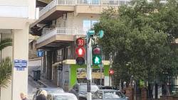 Μετά από τροχαίο που έγινε στον Σταυρό Αμυγδαλεώνα περίπου πριν 4 μήνες, ένα φανάρι χτυπήθηκε. Το φανάρι γέρνει προς τα πλάγια και τοποθετήθηκαν πέτρες στη βάση του για να μην πέσει.