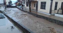 Στην πόλη της Μύρινας έχει υπερχειλίσει το ποτάμι της Αγίας Τριάδας, πλημμυρίζοντας σπίτια, μαγαζιά στην αγορά αλλά και τον περιβάλλοντα χώρο του Μητροπολιτικού Ναού της Αγίας Τριάδας.