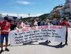 Συγκέντρωση διαμαρτυρίας πραγματοποιήθηκε το πρωί της Πέμπτης 11 Ιουνίου στον Λιμένα της Θάσου από φορείς και εργατικά σωματεία του νησί  Η συγκέντρωση ξεκίνησε με ομιλία από τον Αλέκο Λουβουλούδη πρόεδρο του σωματείου συνταξιούχων ναυτικών Καβάλας - Θάσου