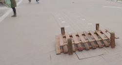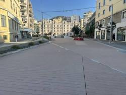 Ο χώρος διαμορφώνεται προκειμένου να αλλάξει όψη. Από την άλλη, παραμένει η ζημιά στο σιντριβάνι και στο δάπεδο που προκλήθηκε από το πέρασμα οχημάτων από το σημείο.