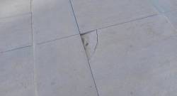 Ακόμα δεν παραδόθηκε η πλατεία Καπνεργάτη και το δάπεδο στο κομμάτι που βρίσκονται τα σιντριβάνια παρουσιάζει έντονές φθορές σε αρκετά σημεία.